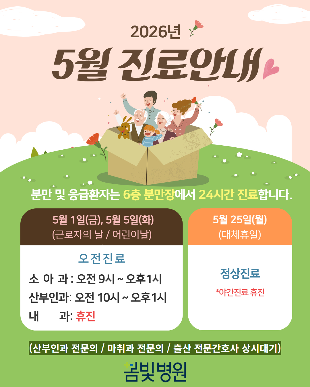🏥 5월 1일(금) & 5월 5일(화) 휴일에도 오전 진료를 운영합니다.